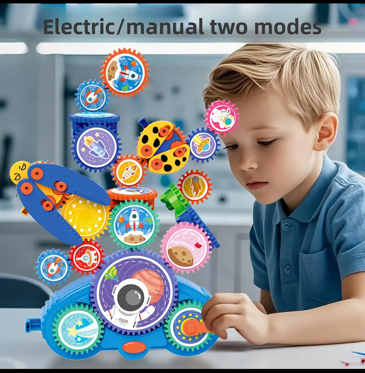 This innovative gear building set is specially designed for children, featuring electric-powered gears that rotate and connect in magical ways.